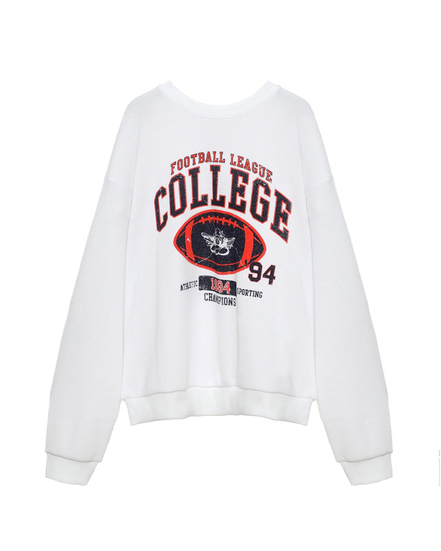 Cozy and stylish, this white thermal crewneck is highlighted by a Boys Lie graphic on the front inspired by college football lettering and design.